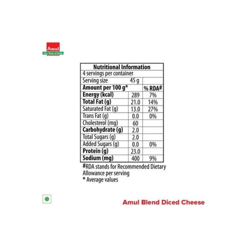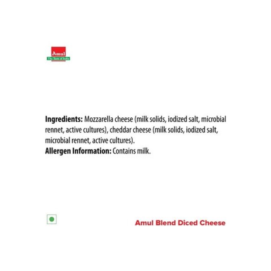 Diced cheese. Mozzarella and cheddar blend. Perfect for delicious pizza, patties, vegetable salad, soup and many more dishes.