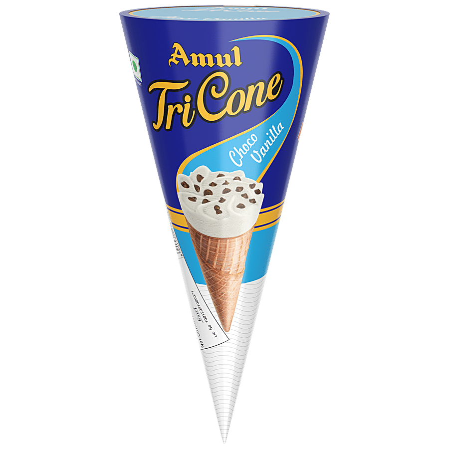 Amul Choco Vanilla Tricone Ice Cream is a 120ml cone combining creamy vanilla ice cream with a rich chocolate topping. Encased in a crisp wafer cone, it offers a delightful mix of textures and flavours. Perfect for on-the-go enjoyment or a quick treat, this ice cream provides a satisfying experience in a convenient format.