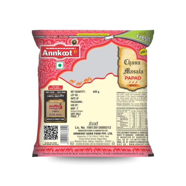 Annkoot Chana Masala Papad 400 gm Red Chilly
