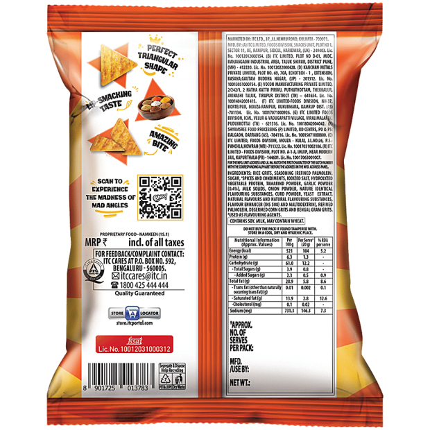 Bingo! Mad Angles Mmmmm Masala - Corn-Based Crunchy Chips, Perfect For Snacking, 33 g Pouch