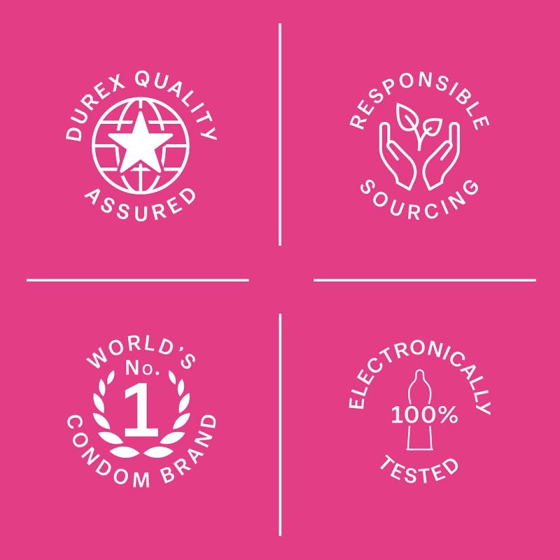 The Durex condoms take on two of your biggest quests, complete intimacy and total protection. They are durable and are tested to withstand breakage. Greater Sensitivity and Intimacy these ultra-thin condoms fit like second skin, so you and your partner can enjoy a heightened sense of intimacy. The straight-walled fit of these condoms heightens sensitivity. Protection guaranteed each condom in this pack is dermatologically tested to ensure complete protection