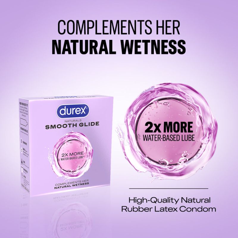 Durex Smooth Glide condoms come with twice the lubrication of a standard condom, helping to reduce friction and make sex feel smoother and more comfortable, especially when experiencing dryness.