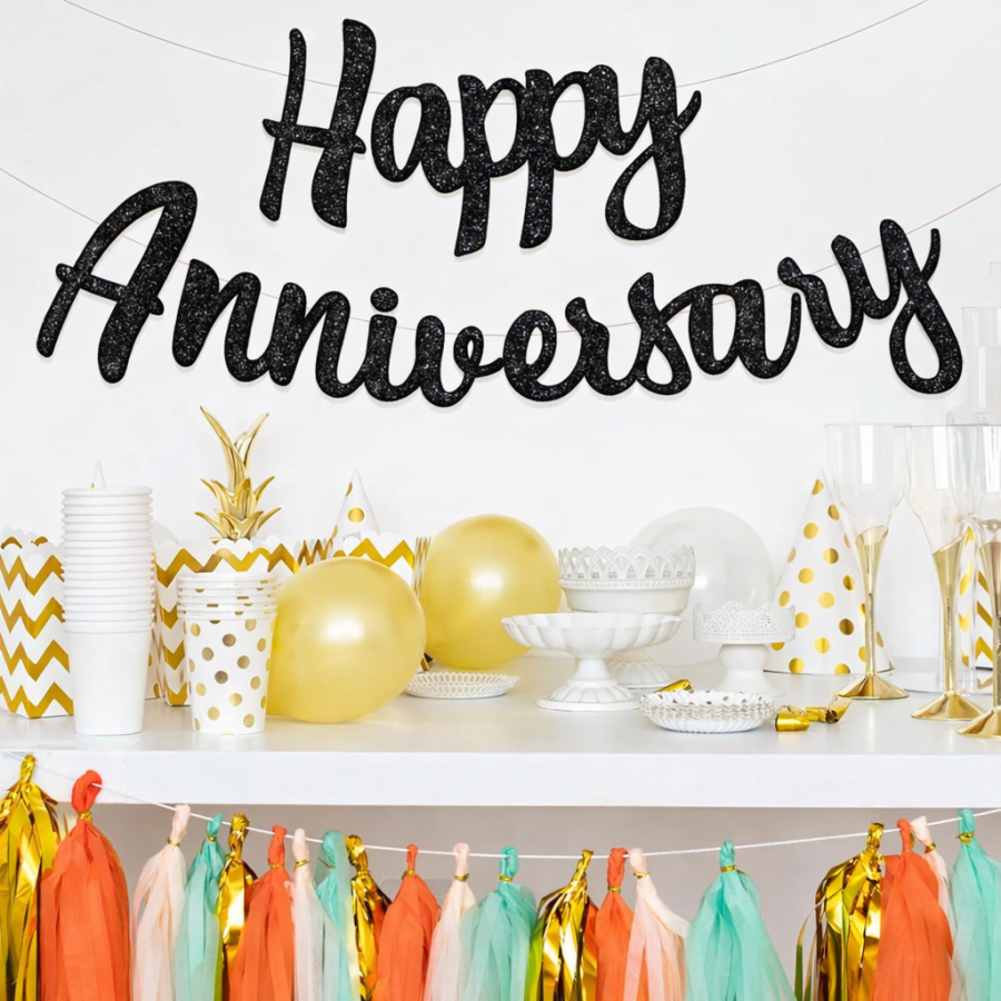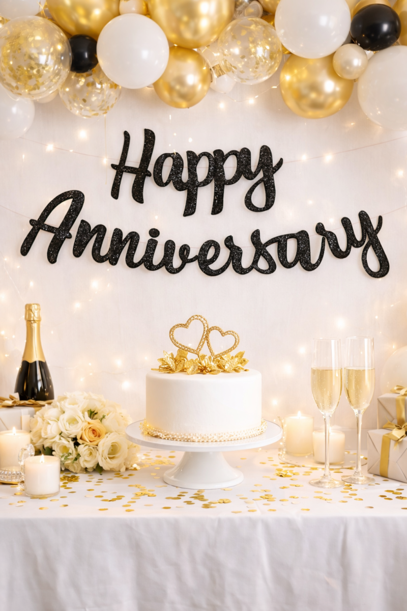Romantic Anniversary Decoration for Couple, Husband, Wife | Shiny Foil Edge Letters |Reusable Hanging Party Garland Décor | Pack 1