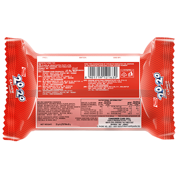 Parle 20-20 Cashew Cookies - Crispy, Sweet, Baked, 30 g Pouch