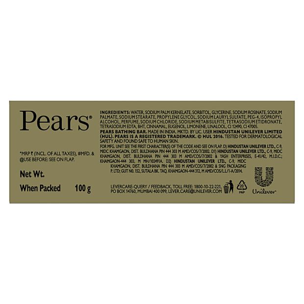 Pears Pure & Gentle Bathing bar with 100% more glycerine* (*vs grade 1 soaps) helps preserve the moisture of your skin and keeps it soft, smooth, and glowing. Pears gently cleanses for a visibly brighter, glowing skin every time you shower. Pears Soap Bar washes away germs, also can be used for handwashing. Pears Pure & Gentle Bathing bar is mild on skin and comes in a gentle formulation with 0% Parabens. Pears are packed in 100% recyclable cartons, our initiative towards being environmentally friendly. To care for your skin, use this mild and gentle bathing bar daily on your face, body & hands.
