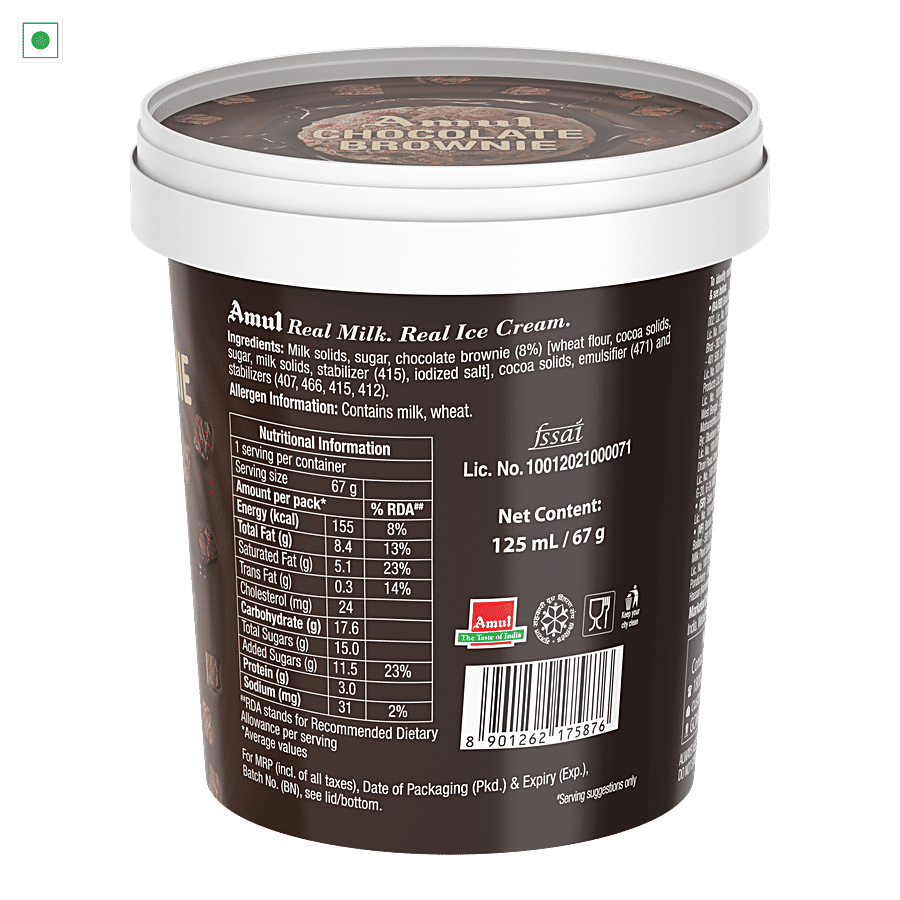 Savour the decadent allure of Amul's Chocolate Brownie Ice Cream, where creamy cocoa indulgence meets irresistible chunks of fudgy brownie. Delight in each spoonful as velvety chocolate ice cream envelops your senses, punctuated by the satisfying crunch of baked brownie pieces. A symphony of flavours awaits, promising a blissful escape into a world of rich, chocolatey bliss.