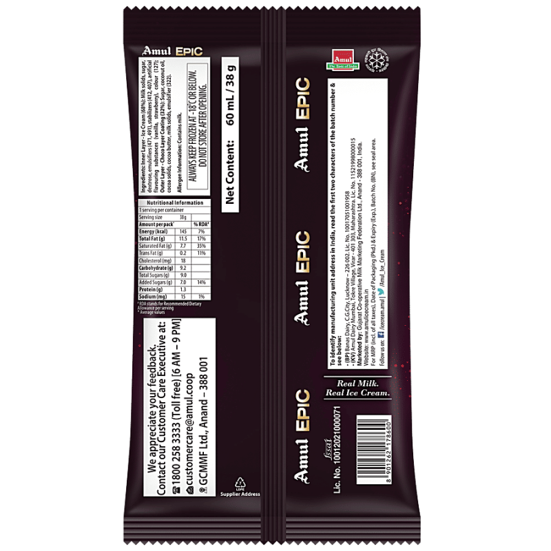 Amul Epic Sweetheart Ice Cream Stick, 60 ml