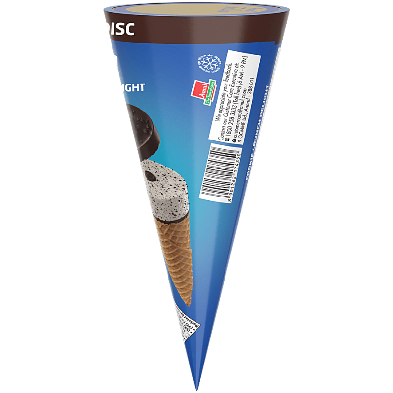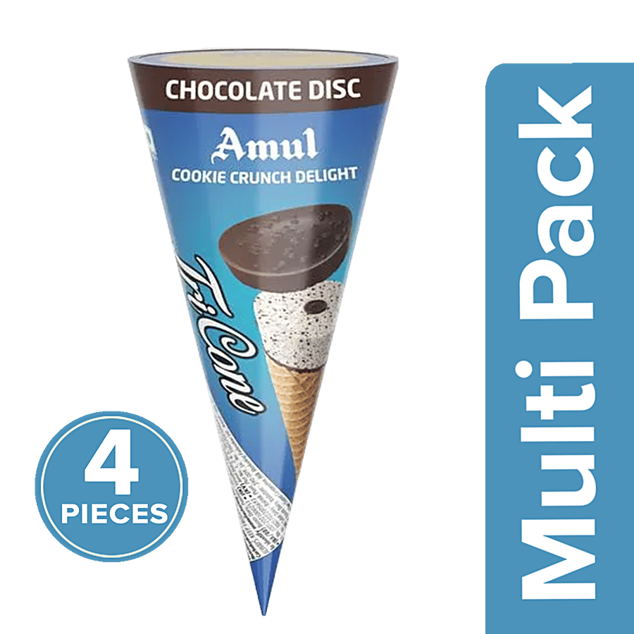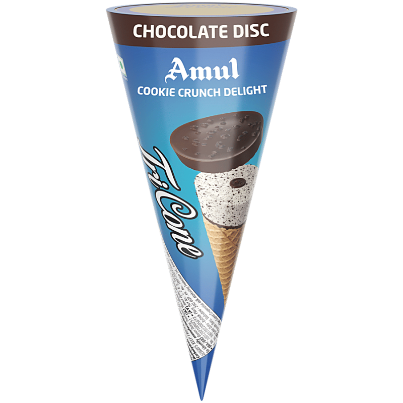 Indulge in the ultimate sensory delight with Amul's Tricone Cookie Crunch Delight. Crafted with the finest natural ingredients, this ice cream treat offers a captivating balance of smooth, creamy ice cream and the perfect crunch of cookie and chocolate. Sink your teeth into the crispy wafer biscuit cone, which encases a fantastic cookie cream ice cream that simply melts in your mouth, leaving a smooth and satisfying aftertaste. Topped with a crunchy thick chocolate disc and delectable cookie crumbs, this delightful dessert is sure to make you go 'wow' with every bite. Amul's Tricone Crunch is a guilt-free indulgence, offering a perfect harmony of flavours and textures for a truly memorable experience.