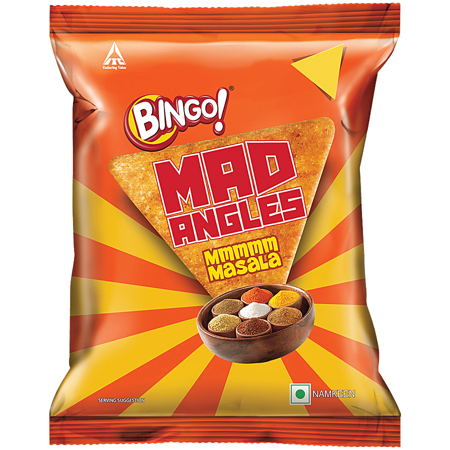 Bingo! Mad Angles Mmmmm Masala - Corn-Based Crunchy Chips, Perfect For Snacking, 33 g Pouch