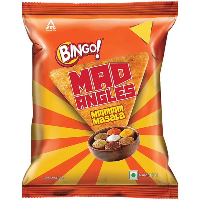Bingo! Mad Angles Mmmmm Masala - Corn-Based Crunchy Chips, Perfect For Snacking, 33 g Pouch