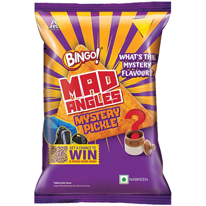 Bingo! Mad Angles Mystery Pickle - Spicy & Crunchy Corn Based Triangle Chips Pack For Snacks