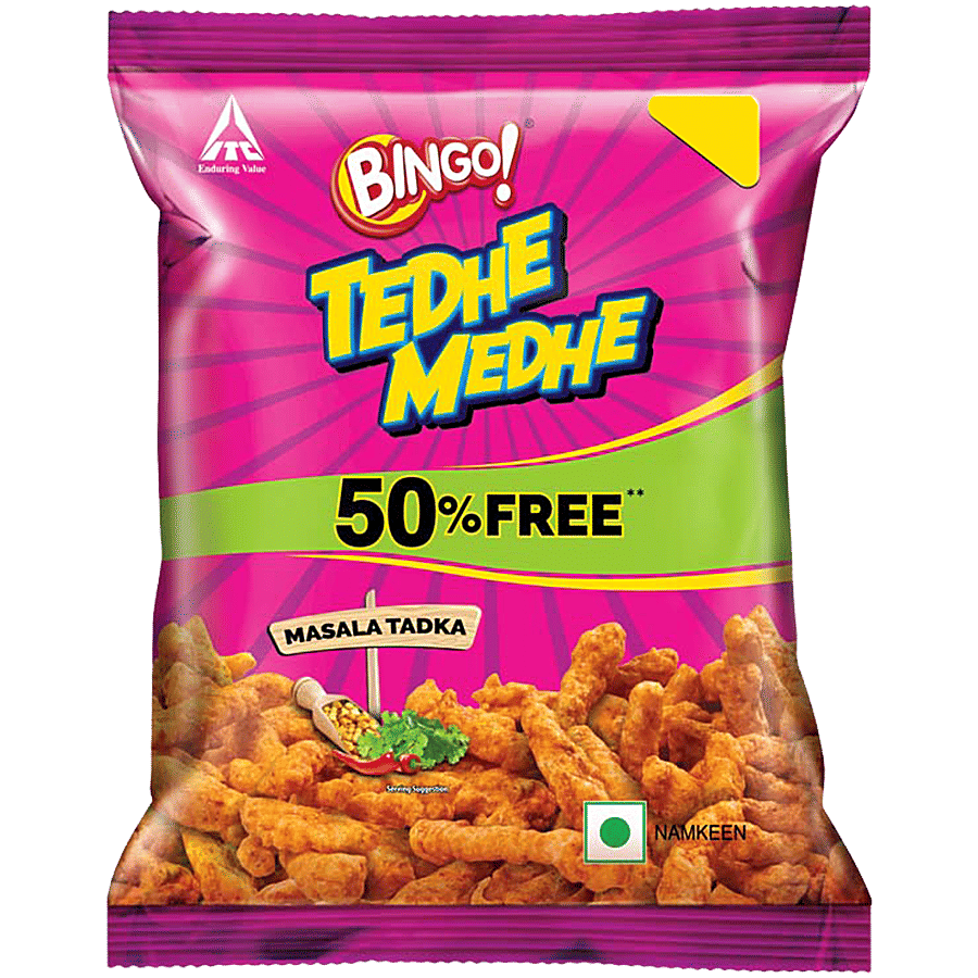 Bingo! Tedhe Medhe Masala Tadka, 18g, Spindle Shaped Crunchy Snack with Indian Masala Flavour Perfect for Snacking