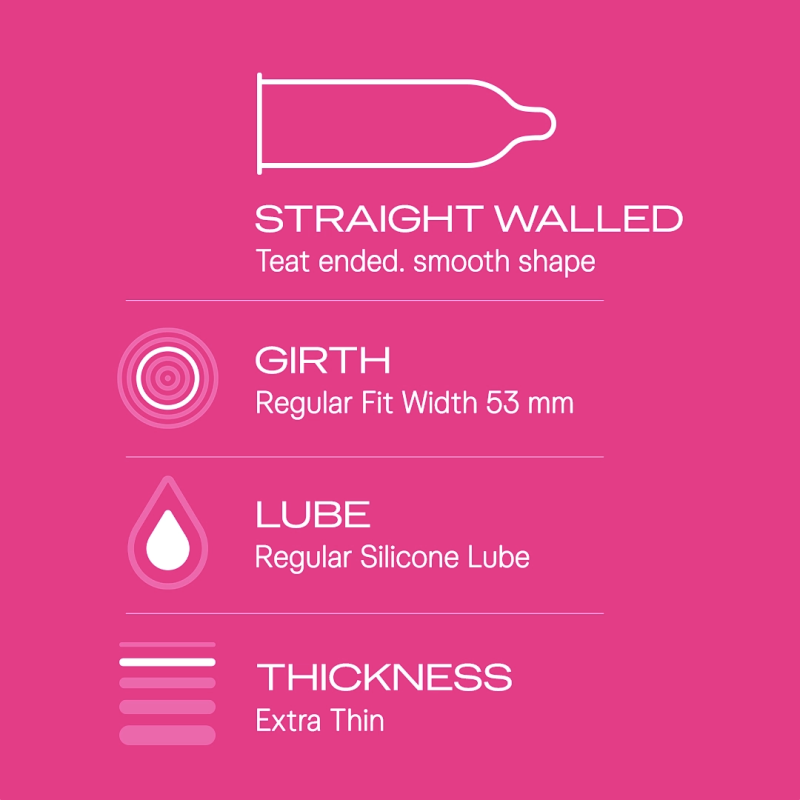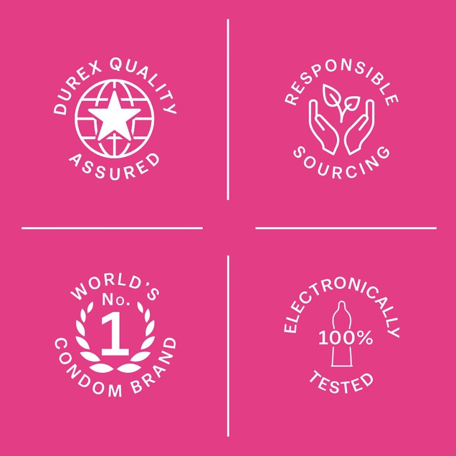 The Durex condoms take on two of your biggest quests, complete intimacy and total protection. They are durable and are tested to withstand breakage. Greater Sensitivity and Intimacy these ultra-thin condoms fit like second skin, so you and your partner can enjoy a heightened sense of intimacy. The straight-walled fit of these condoms heightens sensitivity. Protection guaranteed each condom in this pack is dermatologically tested to ensure complete protection