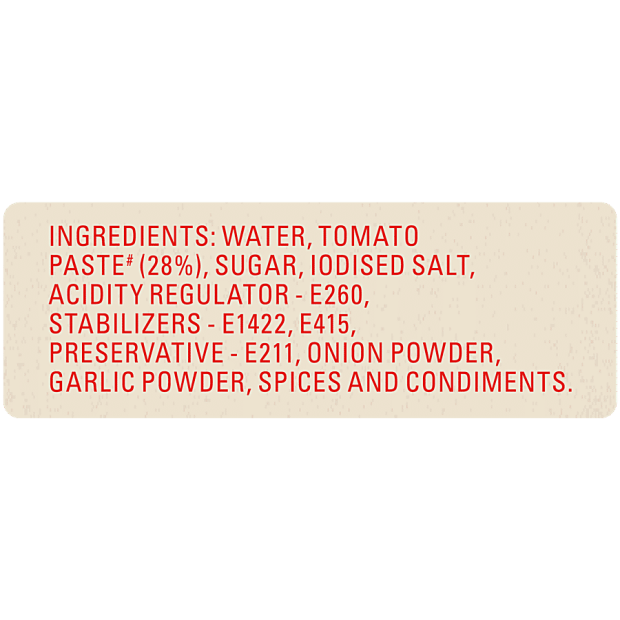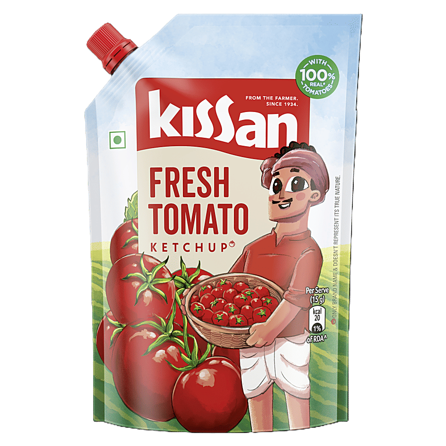 Kissan Fresh Tomato Ketchup is made with 100% real naturally ripened fresh Tomatoes. The Tangy Tomato Ketchup is a must-have at all homes and most loved by Indians! This sauce bottle and pouch packs can either be paired with fries noodles or dhokla. This can be added to almost every dish to make them so much tastier. It’s an assured hero for all the snacks - be it samosas, pakoras, noodles or roti roll – a perfect ally for making wholesome and yummy food. Kissan Tomato ketchup helps healthy foods turn into yummy and tasty for the entire family. You can use this tomato ketchup as a tomato sauce or tomato chutney.