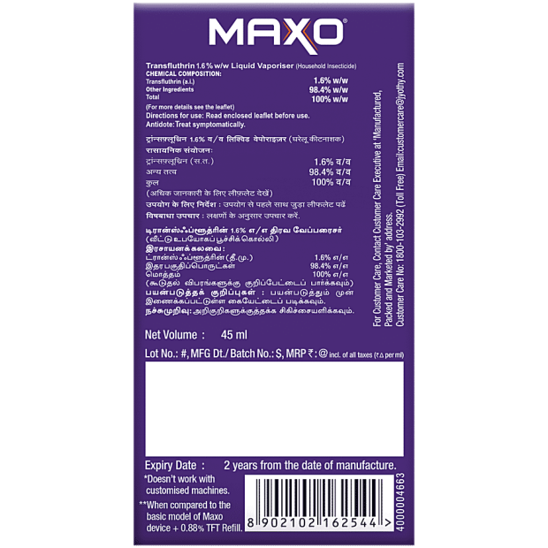 Maxo Genius Mosquito Repellent Liquid - 2X Protection, 45 ml