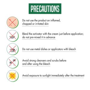 - Using the spatula provided inside, mix 2 spatulas of bleach cream and 2-3 pinches or powder activator together, till the activator completely dissolves.