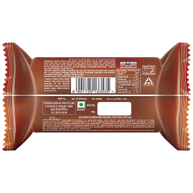 Sunfeast Bounce Biscuits- Choco Creme Cookies 34.8g 6 Pack