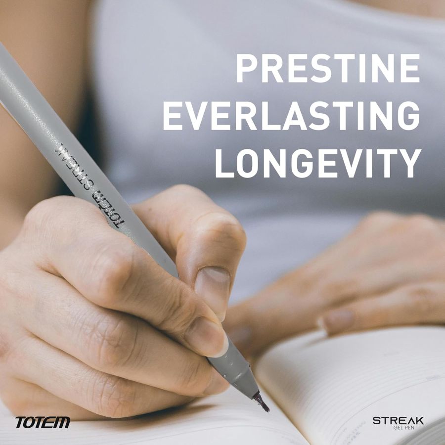 Totem Streak Quick-drying formula prevents smudging, making it ideal for writers and quick note-taking. Experience fluid, smudge-resistant gel ink that glides smoothly for a clean and crisp writing performance. Perfect for a variety of settings, including classrooms, offices, sleek home offices, these pens meet diverse writing needens Is sleek preferences Available in 0.6mm sizes, the ultra-fine tip delivers sharp, clear lines for detailed writing, sketching, or note-taking.