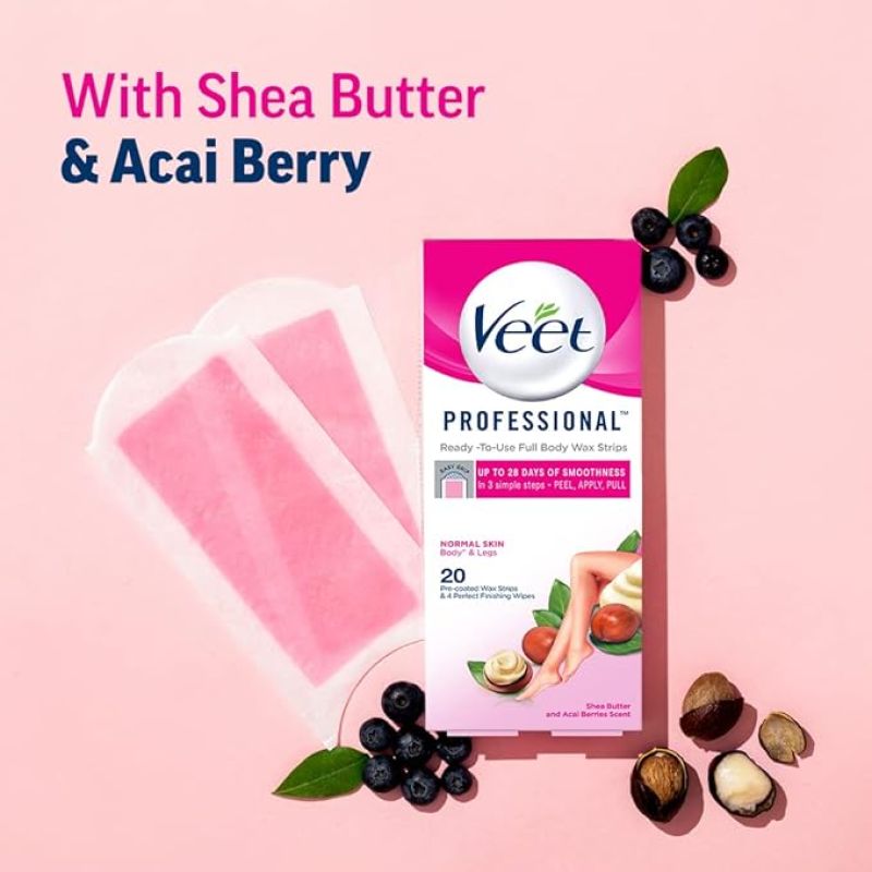 Veet Professional Waxing Strips Kit For Normal Skin, 8 Strips | Up To 28 Days Of Smoothness | No Wax Heater Or Wax Beans Required - 8 Count